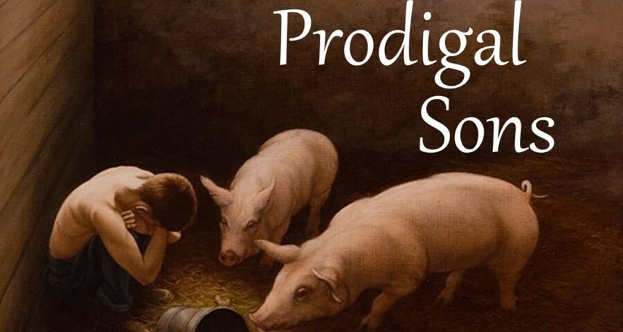 The Prodigal Son is kneeling in the husks.